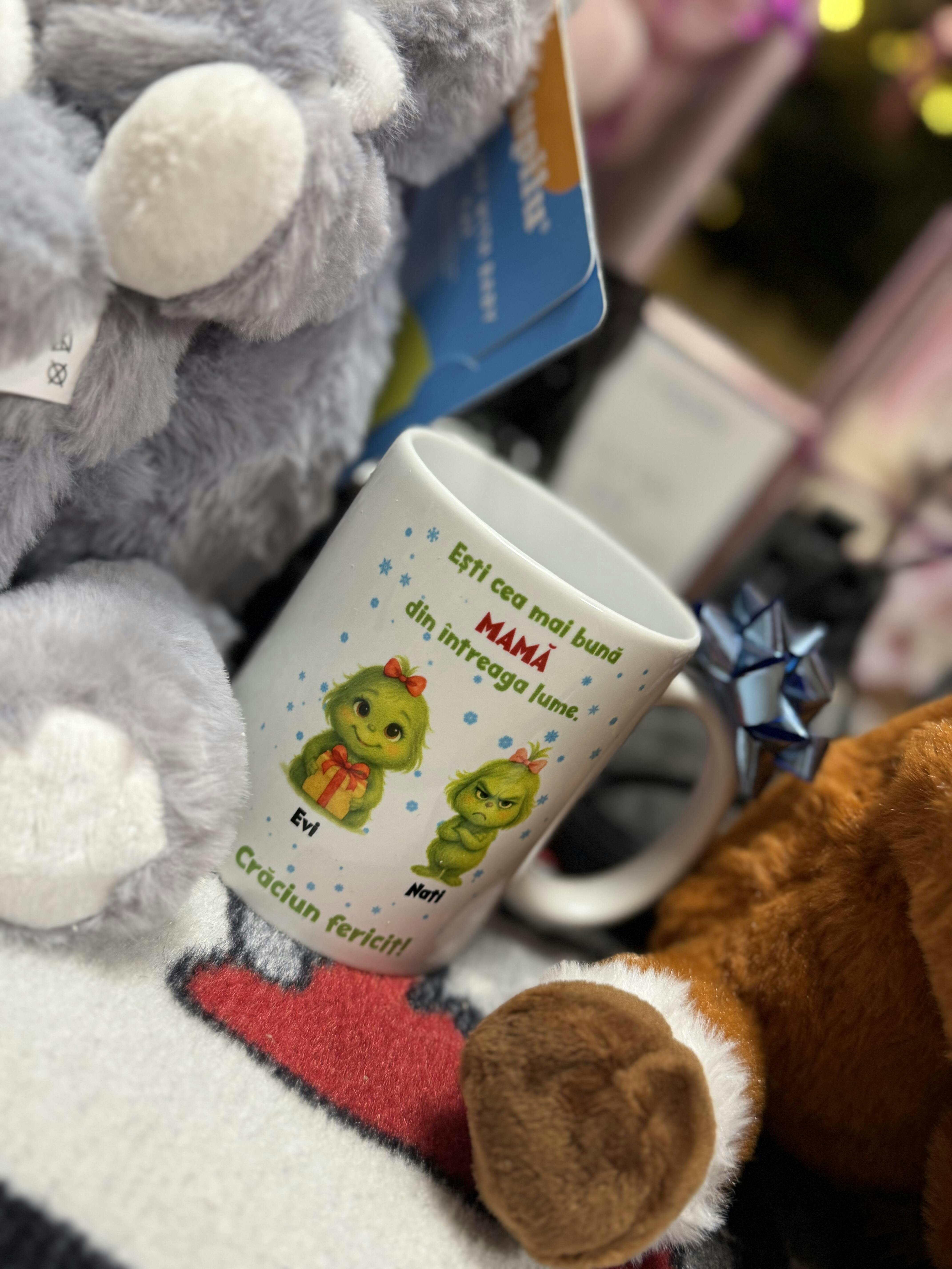 Modelul editat se regăsește pe ambele părți ale cănii.
