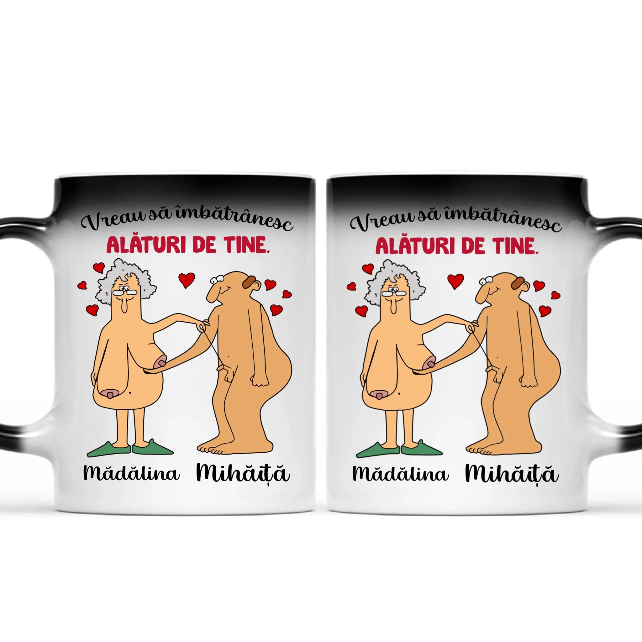 Modelul editat se regăsește pe ambele părți ale cănii.